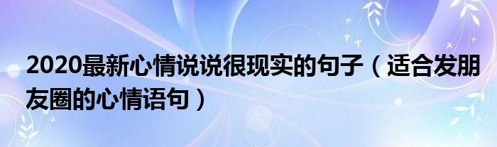 大家好,綜合小編來為大家講解下。2020最新心情說說很現實的句子,適合發朋友圈的心情語句很多人還不知道,現在讓我們一起來看看吧!