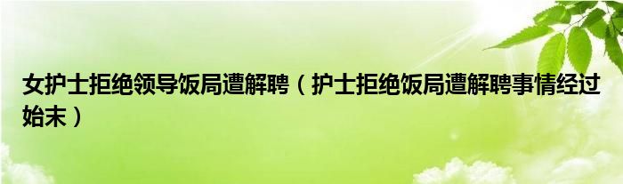 大家好,綜合小編來為大家講解下。女護士拒絕領導飯局遭解聘,護士拒絕飯局遭解聘事情經過始末很多人還不知道,現在讓我們一起來看看吧!