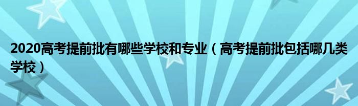 大家好,綜合小編來為大家講解下。2020高考提前批有哪些學校和專業,高考提前批包括哪幾類學校很多人還不知道,現在讓我們一起來看看吧!