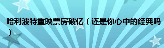 大家好,綜合小編來為大家講解下。哈利波特重映票房破億,還是你心中的經(jīng)典嗎很多人還不知道,現(xiàn)在讓我們一起來看看吧!