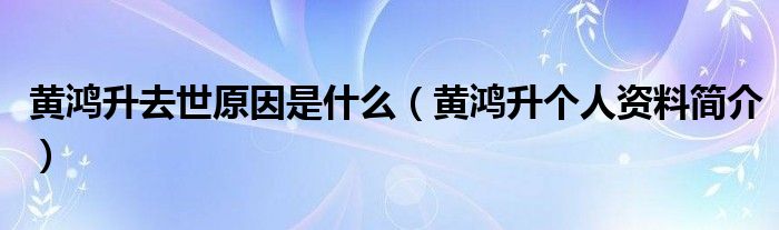 大家好,綜合小編來為大家講解下。黃鴻升去世原因是什么,黃鴻升個人資料簡介很多人還不知道,現在讓我們一起來看看吧!
