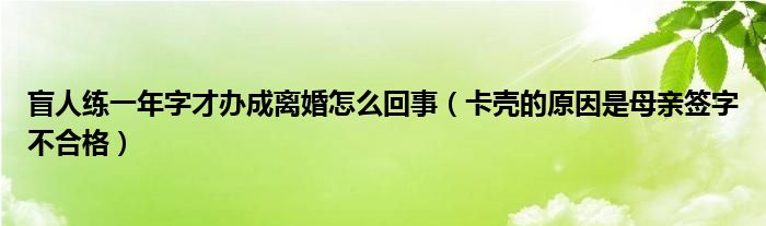 大家好,綜合小編來為大家講解下。盲人練一年字才辦成離婚怎么回事,卡殼的原因是母親簽字不合格很多人還不知道,現(xiàn)在讓我們一起來看看吧!