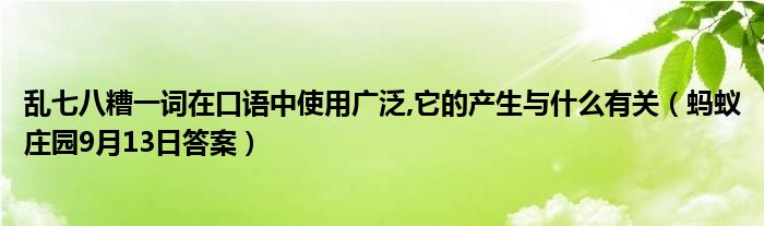 亂七八糟一詞使用廣泛它的產(chǎn)生與什么有關(guān) 支付寶螞蟻莊園9月13日答案