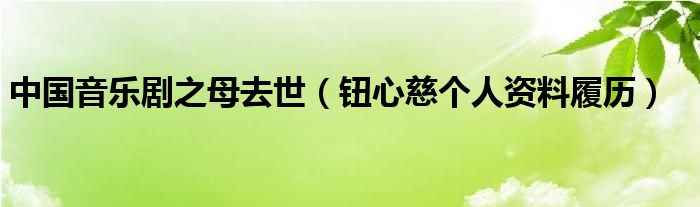 大家好,綜合小編來為大家講解下。中國音樂劇之母去世,鈕心慈個人資料履歷很多人還不知道,現在讓我們一起來看看吧!