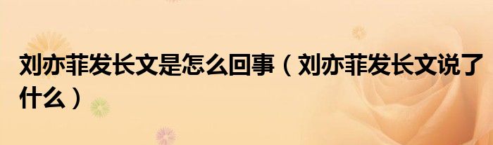 大家好,綜合小編來為大家講解下。劉亦菲發長文是怎么回事,劉亦菲發長文說了什么很多人還不知道,現在讓我們一起來看看吧!