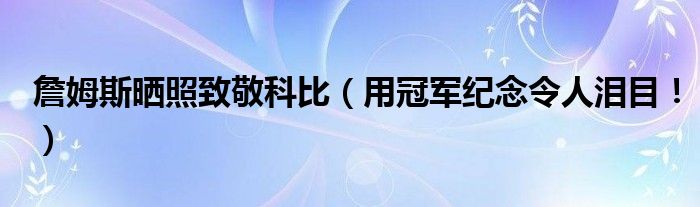詹姆斯曬照致敬科比 用冠軍紀念令人淚目!