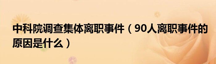 大家好,綜合小編來為大家講解下。中科院調查集體離職事件,90人離職事件的原因是什么很多人還不知道,現在讓我們一起來看看吧!