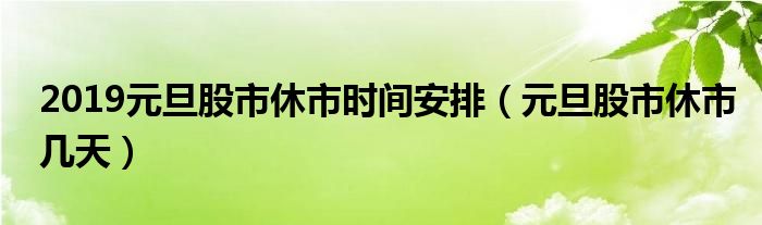 大家好,綜合小編來(lái)為大家講解下。2019元旦股市休市時(shí)間安排,元旦股市休市幾天很多人還不知道,現(xiàn)在讓我們一起來(lái)看看吧!