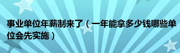 大家好,綜合小編來為大家講解下。事業(yè)單位年薪制來了,一年能拿多少錢哪些單位會先實(shí)施很多人還不知道,現(xiàn)在讓我們一起來看看吧!