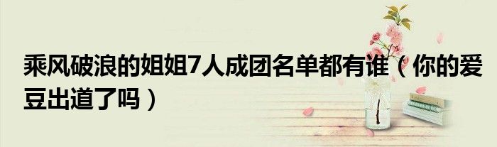 大家好,綜合小編來為大家講解下。乘風(fēng)破浪的姐姐7人成團(tuán)名單都有誰,你的愛豆出道了嗎很多人還不知道,現(xiàn)在讓我們一起來看看吧!