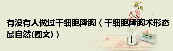 大家好,綜合小編來為大家講解下。有沒有人做過干細胞隆胸,干細胞隆胸術形態最自然(圖文)很多人還不知道,現在讓我們一起來看看吧!