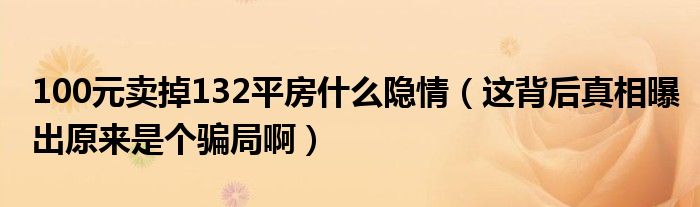 大家好,綜合小編來為大家講解下。100元賣掉132平房什么隱情,這背后真相曝出原來是個騙局啊很多人還不知道,現在讓我們一起來看看吧!