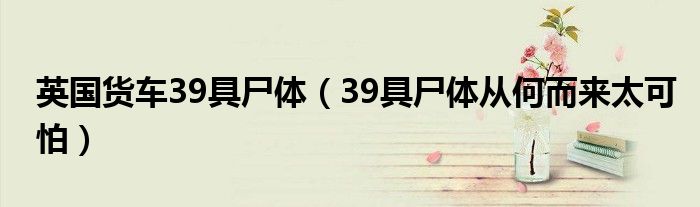大家好,綜合小編來為大家講解下。英國貨車39具尸體,39具尸體從何而來太可怕很多人還不知道,現在讓我們一起來看看吧!