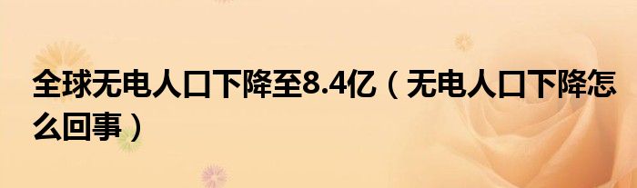 大家好,綜合小編來為大家講解下。全球無電人口下降至8.4億,無電人口下降怎么回事很多人還不知道,現在讓我們一起來看看吧!