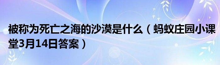 大家好,綜合小編來為大家講解下。被稱為死亡之海的沙漠是什么,螞蟻莊園小課堂3月14日答案很多人還不知道,現在讓我們一起來看看吧!