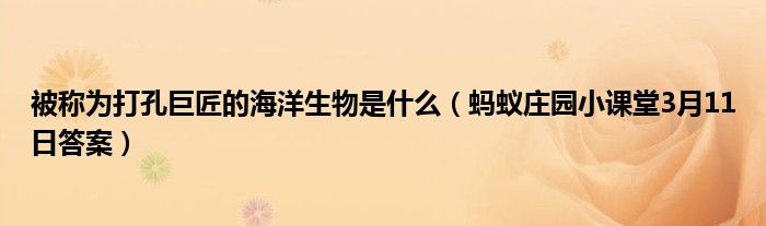 大家好,綜合小編來為大家講解下。被稱為打孔巨匠的海洋生物是什么,螞蟻莊園小課堂3月11日答案很多人還不知道,現在讓我們一起來看看吧!