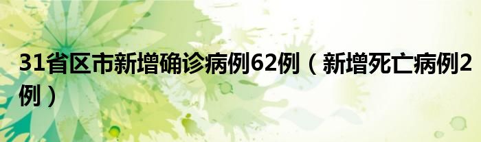 大家好,綜合小編來為大家講解下。31省區市新增確診病例62例,新增死亡病例2例很多人還不知道,現在讓我們一起來看看吧!