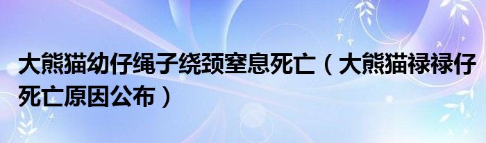 大家好,綜合小編來為大家講解下。大熊貓幼仔繩子繞頸窒息死亡,大熊貓祿祿仔死亡原因公布很多人還不知道,現(xiàn)在讓我們一起來看看吧!