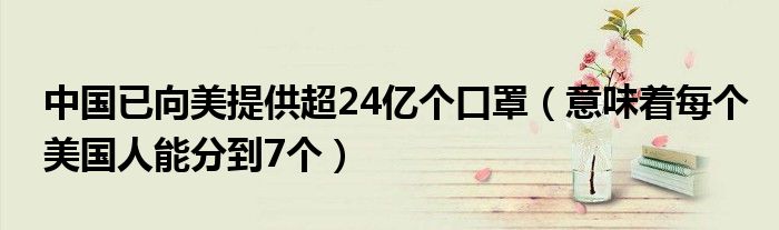 大家好,綜合小編來為大家講解下。中國已向美提供超24億個口罩,意味著每個美國人能分到7個很多人還不知道,現在讓我們一起來看看吧!