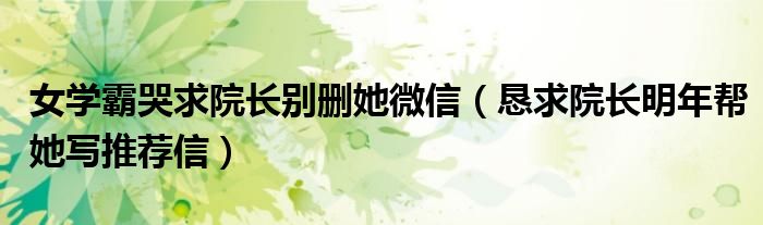 大家好,綜合小編來為大家講解下。女學霸哭求院長別刪她微信,懇求院長明年幫她寫推薦信很多人還不知道,現在讓我們一起來看看吧!