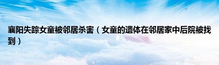 大家好,綜合小編來為大家講解下。襄陽失蹤女童被鄰居殺害,女童的遺體在鄰居家中后院被找到很多人還不知道,現在讓我們一起來看看吧!