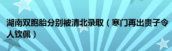 大家好,綜合小編來為大家講解下。湖南雙胞胎分別被清北錄取,寒門再出貴子令人欽佩很多人還不知道,現在讓我們一起來看看吧!