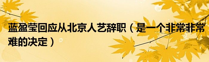 大家好,綜合小編來為大家講解下。藍(lán)盈瑩回應(yīng)從北京人藝辭職,是一個非常非常難的決定很多人還不知道,現(xiàn)在讓我們一起來看看吧!