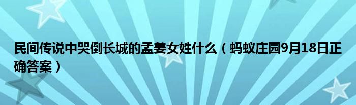 大家好,綜合小編來為大家講解下。民間傳說中哭倒長城的孟姜女姓什么,螞蟻莊園9月18日正確答案很多人還不知道,現在讓我們一起來看看吧!