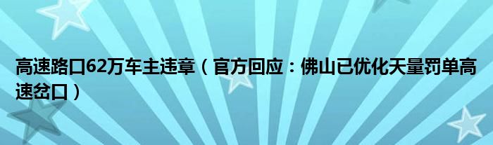 大家好,綜合小編來為大家講解下。高速路口62萬車主違章,官方回應:佛山已優化天量罰單高速岔口很多人還不知道,現在讓我們一起來看看吧!