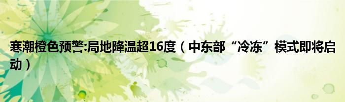 大家好,綜合小編來為大家講解下。寒潮橙色預(yù)警:局地降溫超16度,中東部“冷凍”模式即將啟動很多人還不知道,現(xiàn)在讓我們一起來看看吧!