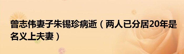 大家好,綜合小編來(lái)為大家講解下。曾志偉妻子朱錫珍病逝,兩人已分居20年是名義上夫妻很多人還不知道,現(xiàn)在讓我們一起來(lái)看看吧!