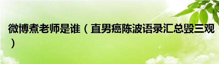大家好,綜合小編來為大家講解下。微博煮老師是誰(shuí),直男癌陳波語(yǔ)錄匯總毀三觀很多人還不知道,現(xiàn)在讓我們一起來看看吧!