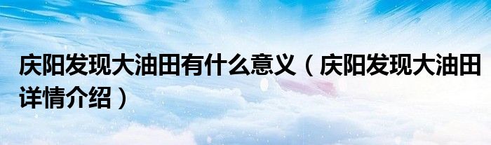 大家好,綜合小編來為大家講解下。慶陽發現大油田有什么意義,慶陽發現大油田詳情介紹很多人還不知道,現在讓我們一起來看看吧!