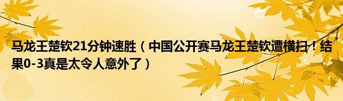 大家好,綜合小編來為大家講解下。馬龍王楚欽21分鐘速勝,中國公開賽馬龍王楚欽遭橫掃!結果0-3真是太令人意外了很多人還不知道,現在讓我們一起來看看吧!