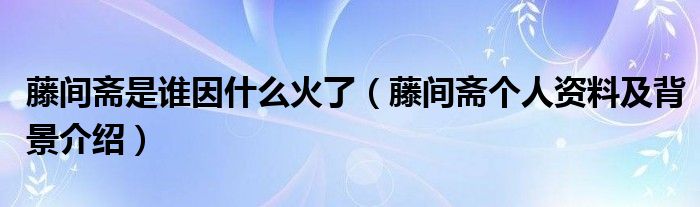 大家好,綜合小編來(lái)為大家講解下。藤間齋是誰(shuí)因什么火了,藤間齋個(gè)人資料及背景介紹很多人還不知道,現(xiàn)在讓我們一起來(lái)看看吧!