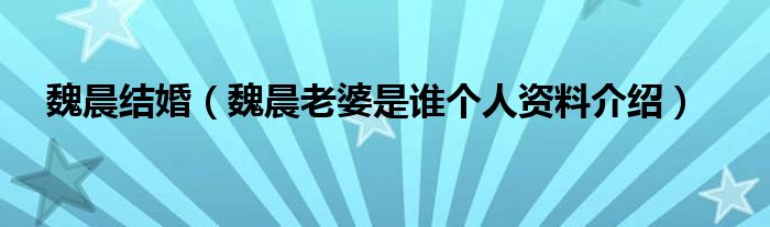 大家好,綜合小編來為大家講解下。魏晨結(jié)婚,魏晨老婆是誰個人資料介紹很多人還不知道,現(xiàn)在讓我們一起來看看吧!