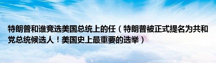 大家好,綜合小編來為大家講解下。特朗普和誰競選美國總統(tǒng)上的任,特朗普被正式提名為共和黨總統(tǒng)候選人!美國史上最重要的選舉很多人還不知道,現(xiàn)在讓我們一起來看看吧!