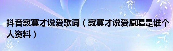 大家好,綜合小編來為大家講解下。抖音寂寞才說愛歌詞,寂寞才說愛原唱是誰個人資料很多人還不知道,現在讓我們一起來看看吧!