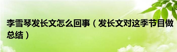 大家好,綜合小編來為大家講解下。李雪琴發長文怎么回事,發長文對這季節目做總結很多人還不知道,現在讓我們一起來看看吧!