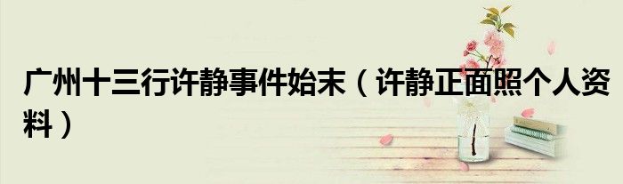 大家好,綜合小編來為大家講解下。廣州十三行許靜事件始末,許靜正面照個人資料很多人還不知道,現(xiàn)在讓我們一起來看看吧!