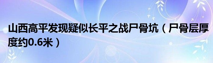 大家好,綜合小編來為大家講解下。山西高平發現疑似長平之戰尸骨坑,尸骨層厚度約0.6米很多人還不知道,現在讓我們一起來看看吧!