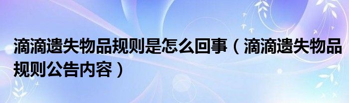 滴滴遺失物品規則是怎么回事?滴滴遺失物品規則是什么情況?很多小伙伴們都還不知道,下面就和小編一起來看看吧。