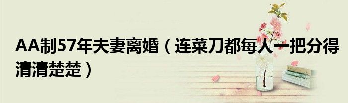 大家好,綜合小編來為大家講解下。AA制57年夫妻離婚,連菜刀都每人一把分得清清楚楚很多人還不知道,現在讓我們一起來看看吧!