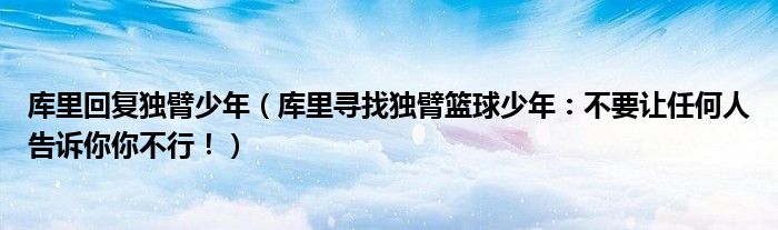 大家好,綜合小編來為大家講解下。庫里回復獨臂少年,庫里尋找獨臂籃球少年:不要讓任何人告訴你你不行!很多人還不知道,現在讓我們一起來看看吧!