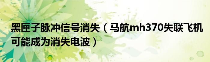 大家好,綜合小編來為大家講解下。黑匣子脈沖信號消失,馬航mh370失聯飛機可能成為消失電波很多人還不知道,現在讓我們一起來看看吧!
