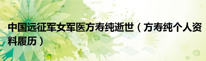 大家好,綜合小編來為大家講解下。中國遠征軍女軍醫方壽純逝世,方壽純個人資料履歷很多人還不知道,現在讓我們一起來看看吧!