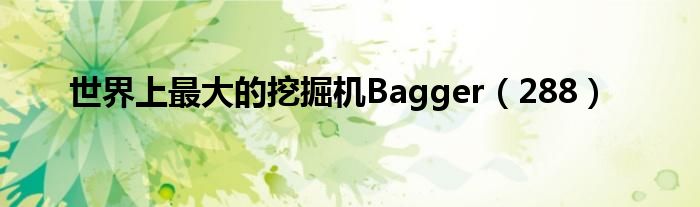 大家好,綜合小編來為大家講解下。世界上最大的挖掘機Bagger,288很多人還不知道,現在讓我們一起來看看吧!