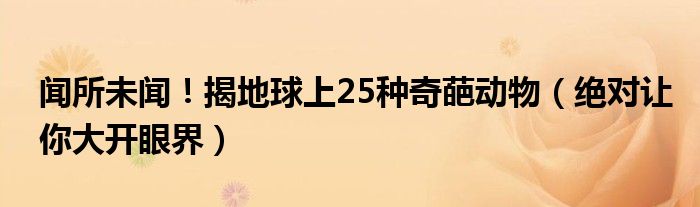 導(dǎo)讀 大家好,綜合小編來(lái)為大家講解下。聞所未聞!揭地球上25種奇葩動(dòng)物,絕對(duì)讓你大開(kāi)眼界很多人還不知道,現(xiàn)在讓我們一起來(lái)看看吧!  聞所未