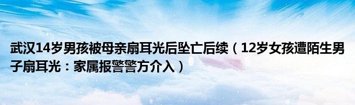 大家好,綜合小編來為大家講解下。武漢14歲男孩被母親扇耳光后墜亡后續,12歲女孩遭陌生男子扇耳光:家屬報警警方介入很多人還不知道,現在讓我們一起來看看吧!