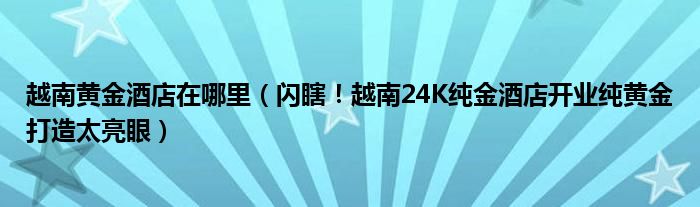 大家好,綜合小編來為大家講解下。越南黃金酒店在哪里,閃瞎!越南24K純金酒店開業(yè)純黃金打造太亮眼很多人還不知道,現(xiàn)在讓我們一起來看看吧!